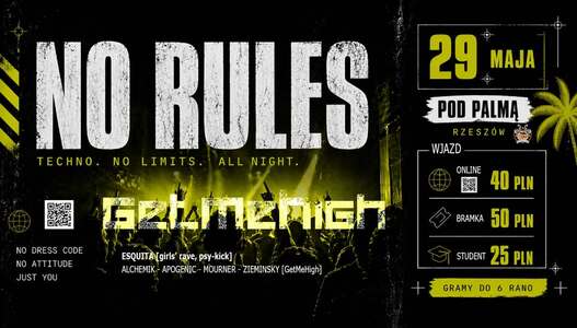 Bilety online w cenie 40 zł: https://app.evently.pl/events/13566-getmehigh-no-rules/checkout?ticket_id=22864 (przedsprzedaż od 27.04 do 22.05)