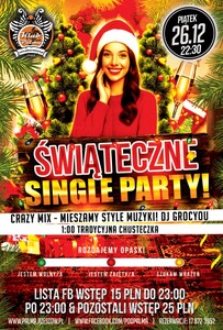 Zapraszamy na kolejną odsłonę kultowej imprezy z cyklu #SingleParty! Czas na Przygodę! Czas na Flirt! Czas na Wrażenia! Czas na Miłość! Bądź z nami i spędź ten wieczór w wybornym towarzystwie.
